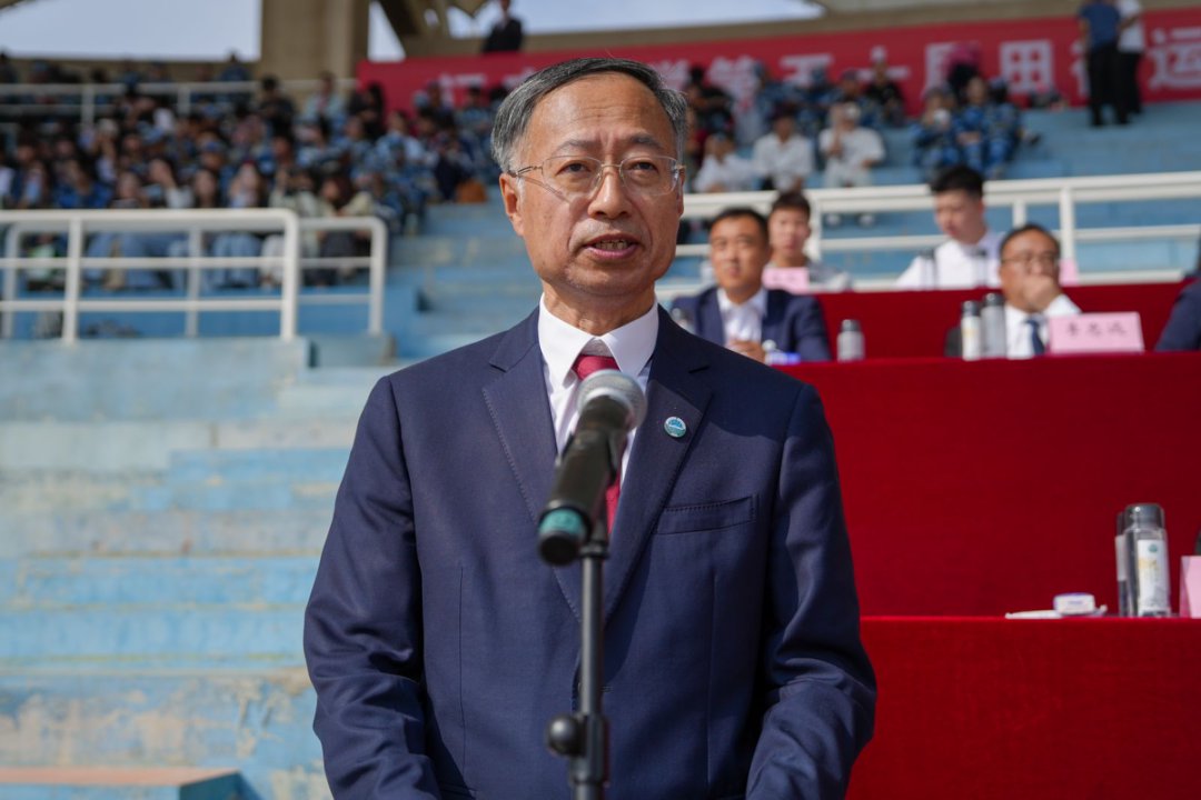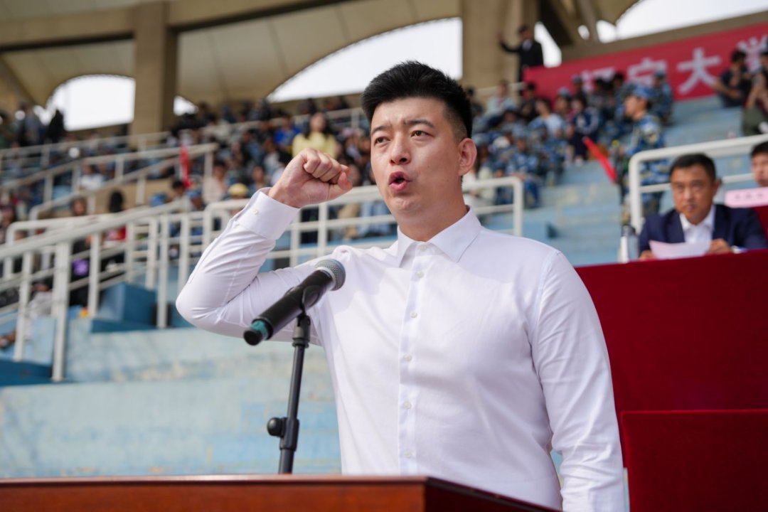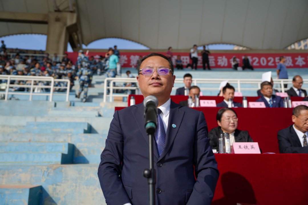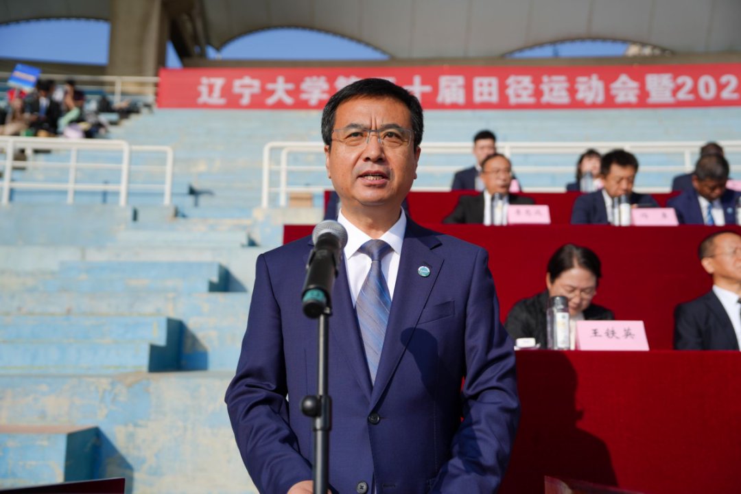 他强调,体育是“五育并举”的关键一环,更是铸就健全人格、激扬奋斗精神的重要路径。学校近年来系统构建“以体育人”培养体系,成效逐步显现。从上学期深受欢迎的毕业健康跑,到即将启动的迎新健康跑,从“金球节”到各类体育社团,体育已深深融入辽大校园文化肌理。他希望大家以第五十届运动会为新起点,把赛场上的拼搏精神、协作意识和时间观念融入学业与人生规划,坚持每天锻炼一小时,让运动成为生活的一部分,让健康成为奋斗的底色。在运动中锤炼意志、健全人格,真正成长为与时代同频共振、与家国命运与共的栋梁之材!