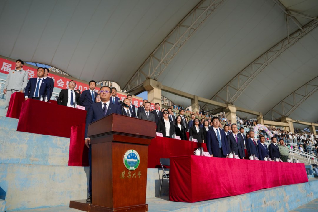 潘一山致运动会开幕辞。他指出,辽宁大学一直以来高度重视体育工作,将其摆在育人全局的重要位置。这场跨越半个世纪的体育盛会,早已超越竞技本身,成为辽大气质传承的重要载体。它记录下运动场上“勇毅笃行、追求卓越”的青春身影,诠释着“同舟共济、众志成城”的集体力量,也见证着学校体育设施日益完善、体育文化蔚然成风的发展历程。